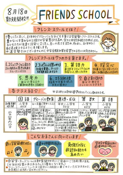 このたび、フレンズスクールの魅力をギュッと詰め込んだ新しいチラシができあがりました✨